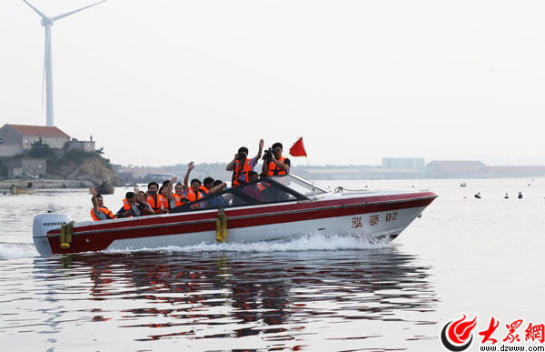 大眾網榮成8月16日訊(記者 孫晨)青山碧海、水天一線,成群結隊的海鷗,一望無際的養殖場。今天下午“海上糧倉·全國網絡媒體山東海洋行”采訪團記者來到鴻泰桑溝灣海洋牧場,開啟海中漁家樂休閑體驗之旅,親身體驗“海上采摘”。