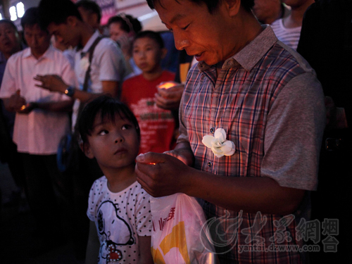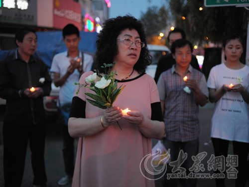 煙臺市民在悼念現場悼念