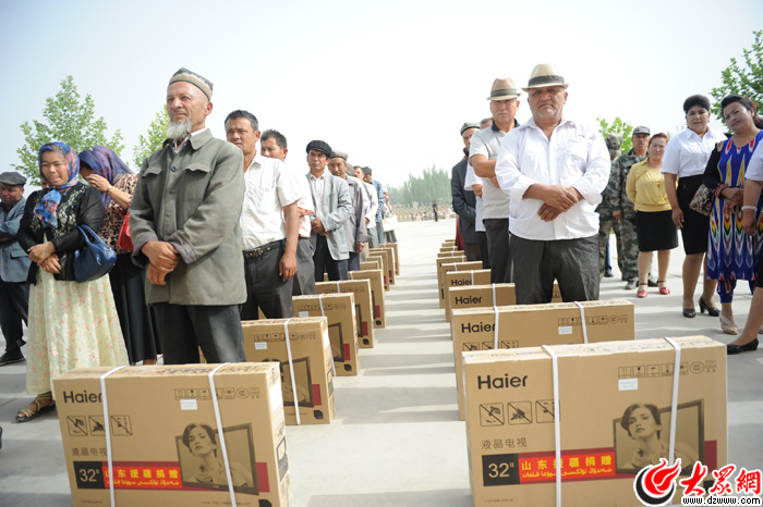 第二次中央新疆工作座談會召開后,山東省委、省政府積極貫徹會議精神,出臺了《山東省落實第二次中央新疆工作座談會精神進一步做好援疆工作的政策措施》,提出“以現代文化為引領,開展文化惠民活動。結合富民安居房建設,在省援疆資金中安排文化引導資金,開展‘電視送農戶,文化進萬家’活動。項目分三年實施,將累計為喀什地區受援4縣農戶贈送12萬臺知名品牌電視機。按照計劃,2014年山東援疆已經贈送1萬臺32寸液晶電視,2015年和2016年分別再贈送5.5萬臺。