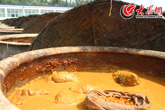 9日上午,大眾網(wǎng)記者來(lái)到了位于山東省濟(jì)寧市濟(jì)鄒路上的玉堂醬園生產(chǎn)基地。3000余只醬缸整理的排列在釀曬場(chǎng)上,今年61歲的老師傅張廣民告訴記者,只有用保持了三百年的傳統(tǒng)工藝,才能釀造出獨(dú)居風(fēng)味的玉堂醬菜,每一缸、每一包醬菜都要在這里經(jīng)過(guò)至少半個(gè)月的自然釀曬、人工翻倒。