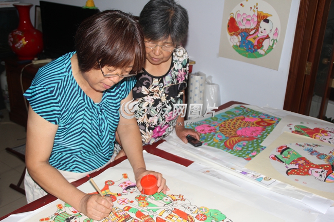 在“家家聞絲竹,戶戶弄丹青”的臨朐,有著悠久的繪畫傳統(tǒng)。從明清時期起,臨朐手繪年畫就久負盛名,且在長期的傳承與實踐中,巧妙地借鑒和吸收了其他中國農(nóng)民畫的表現(xiàn)元素,融入了臨朐一帶民間布藝、雕塑、石刻等傳統(tǒng)藝術(shù)表現(xiàn)手法,逐漸形成了獨有的藝術(shù)風格和特色。與大眾熟知的楊柳青年畫、桃花塢年畫大多采用雕版印刷的形式不同,臨朐的每一幅年畫都是手工繪制,這使得每一幅作品都是獨一無二的,與此同時也對繪制者提出了更高的要求。