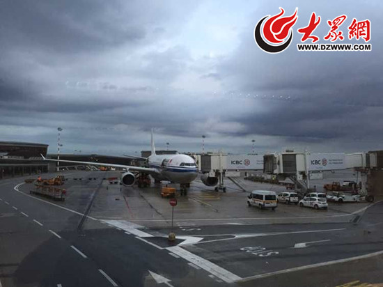 經(jīng)過(guò)10個(gè)小時(shí)的飛行,國(guó)航A330航班緩緩降落在米蘭馬爾彭薩機(jī)場(chǎng),米蘭世博會(huì)山東代表團(tuán)順利抵達(dá)米蘭。落日余暉映照著白云,米蘭時(shí)間是14日晚上7點(diǎn),此時(shí)的濟(jì)南是凌晨1點(diǎn),已是夜深人靜。