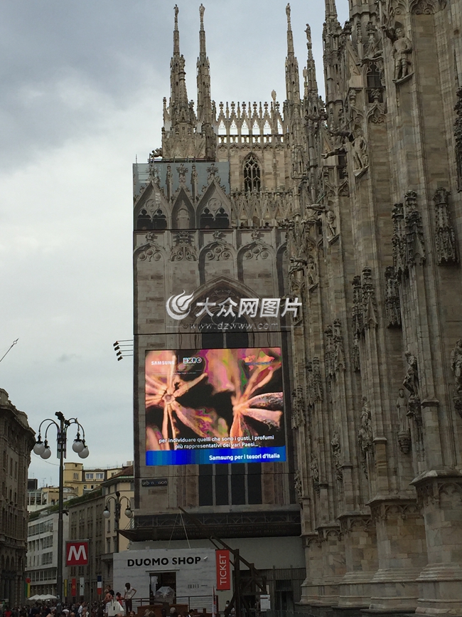 米蘭大教堂的大屏幕在播放世博會宣傳片。