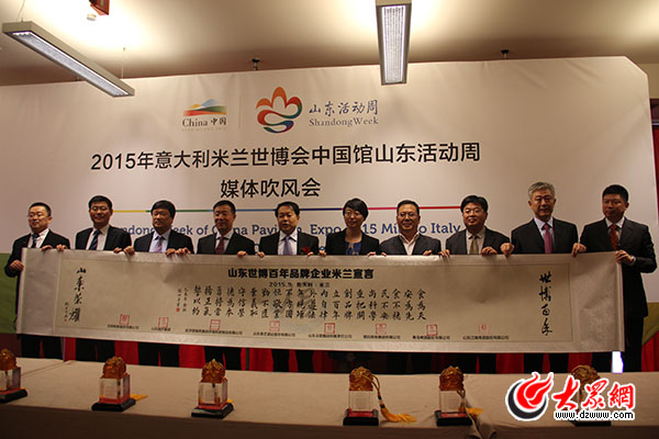 大眾網米蘭9月15日訊特派記者 邢玉軍)當地時間9月15日11:45分,8家山東世博百年品牌企業共同決定,在世界品牌之都米蘭,在本屆世博會山東周開幕前夕,鄭重發起一場共同宣言,倡導食品安全,呼喚誠信經營,借此向全世界展示山東省食品安全建設的誠心,以及世博百年品牌的精神傳承和責任擔當。