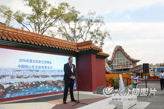 大眾網米蘭9月17日訊特派記者 邢玉軍)當地時間9月17日上午10點40分,由青島市人民政府主辦的2015意大利米蘭世博會山東周青島日活動在中國館成功舉辦。一系列富有青島特色的演出、展示和經貿活動,在世博會上勁吹“青島風”。