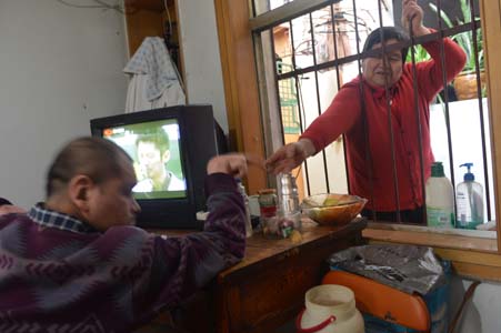 “比伺候小月孩兒還費(fèi)事——他沉啊,我年紀(jì)大了,快抱不動(dòng)他了。”宋艷花有些無(wú)奈地說(shuō)。她住的房間和兒子的房間的窗玻璃都卸掉了,這樣能隨時(shí)聽到兒子的動(dòng)靜。晚上德斌會(huì)從床上掉下來(lái),原來(lái)她自己能抱得動(dòng),現(xiàn)在要請(qǐng)別人幫忙,時(shí)間比較早可以請(qǐng)鄰居,如果太晚了,就打電話叫住在附近的兒子或女婿。