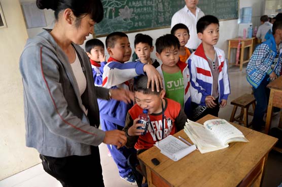 只有媽媽在身邊時王瑞鑫才敢大口大口地享受著喝水的愉悅。