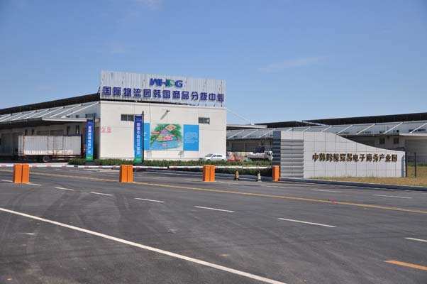 “中韓跨境貿易電子商務產業園”是物流園中韓自貿區對接工作的一個重點區域。在這個占地面積29萬平方米的園區里,建有12座標準化倉庫以及3座沿街商務樓,主要規劃有跨境電商監管中心、保稅倉儲中心、商品分揀分撥中心、跨境貿易電商基地、商品(保稅)展示交易中心、快遞物流產業園六大核心功能板塊。