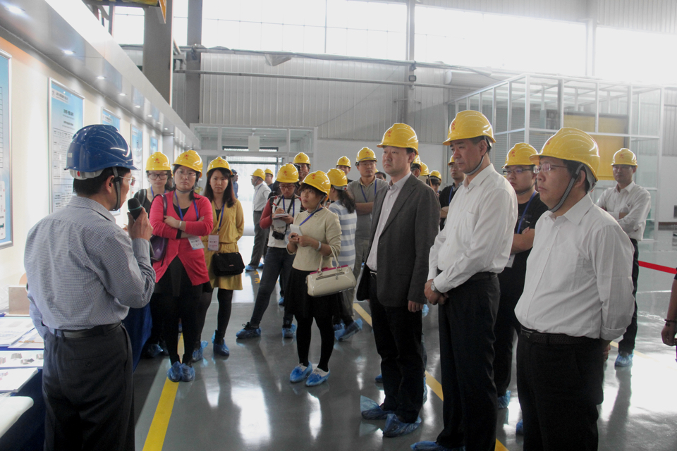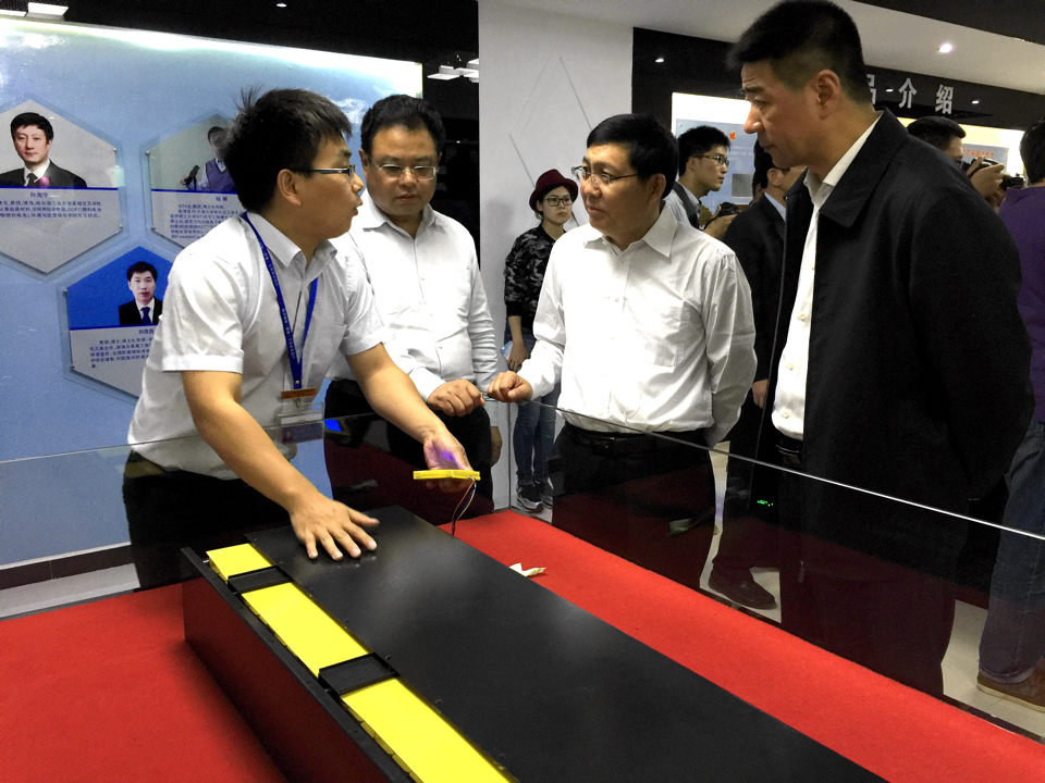 玉皇新能源技術中心的工作人員向采訪團介紹石墨烯鋰動力電池。大眾網記者 攝