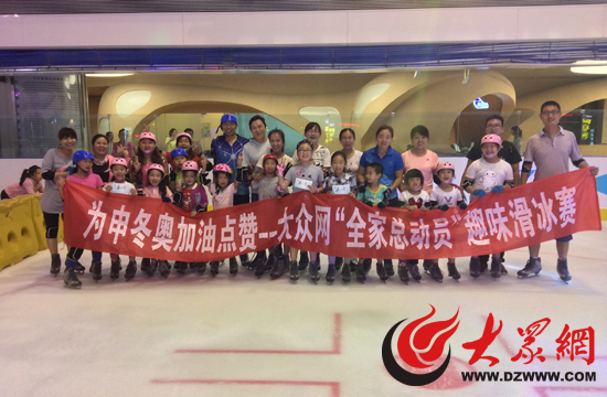 6月14日下午,為申冬奧加油點贊——大眾網“全家總動員”趣味滑冰賽在濟南世紀星滑冰場拉開序幕。