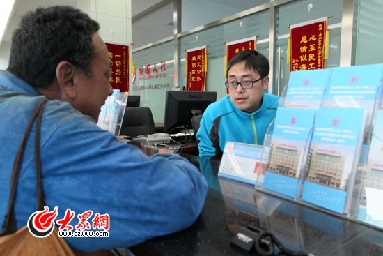 邱飛(右)在接受農民工的咨詢。(大眾網記者 孫乘昀 攝)