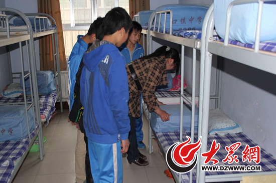 萊蕪市口鎮中學導師深到學生宿舍,從內務整理到習慣養成對學生進行指導。