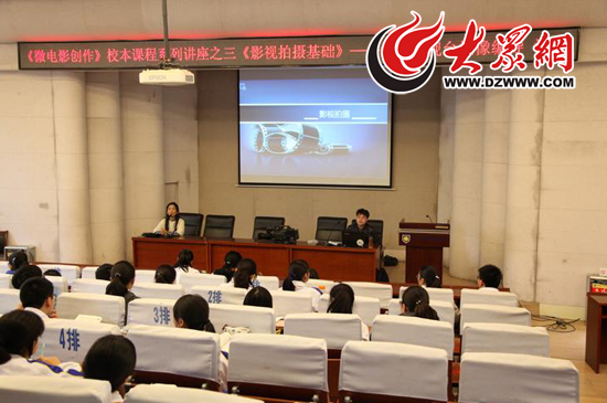4月9日,山東師大附中《微電影創作》校本課程第三講開講,濟南電視臺攝像、編導謝飛為附中學子講解了《影視拍攝基礎》。