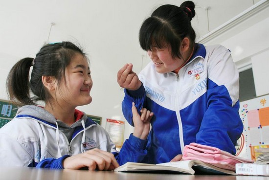 張明月今年18歲,由于患先天性聽力障礙,2005年她從高青來到淄博市聾人學校就讀。這一年,同是高青人的張月成了張明月的同學。與別人不同的是,張月自幼患有小兒麻痹癥,行走比較困難。學校是寄宿制的,由于無法正常行走,生活中好多方面張月無法自理,她也無法融入到小伙伴的游戲中。