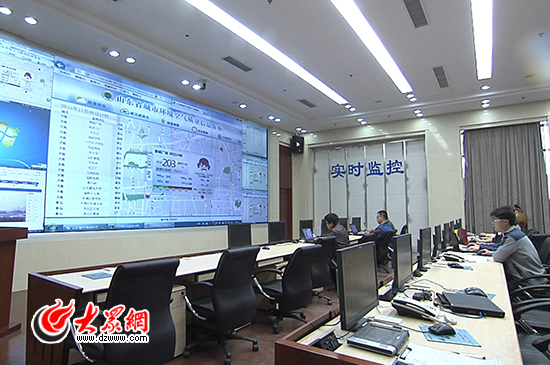 山東省環保廳17樓的監控室實時監控山東各地的污染情況。