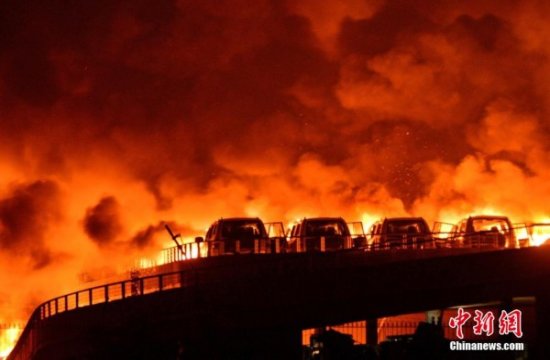 天津港危險品倉庫發生爆炸 數千輛汽車被燒焦
