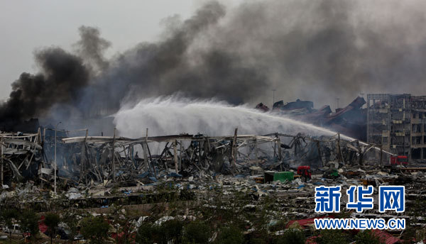 8月14日下午,消防隊員正在現(xiàn)場滅火。新華社記者 張鋮攝