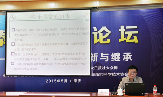2015年5月15-16日,“第三期泰山科技論壇—中國針灸學(xué)的創(chuàng)新與繼承”在泰安市召開。本次論壇由山東省科學(xué)技術(shù)協(xié)會、齊魯晚報(bào)、大眾日報(bào)社大眾網(wǎng)聯(lián)合主辦,山東針灸學(xué)會承辦,泰安市科學(xué)技術(shù)協(xié)會、泰安市中醫(yī)院協(xié)辦,來自我省針灸學(xué)領(lǐng)域的骨干會員60余人參加了會議。