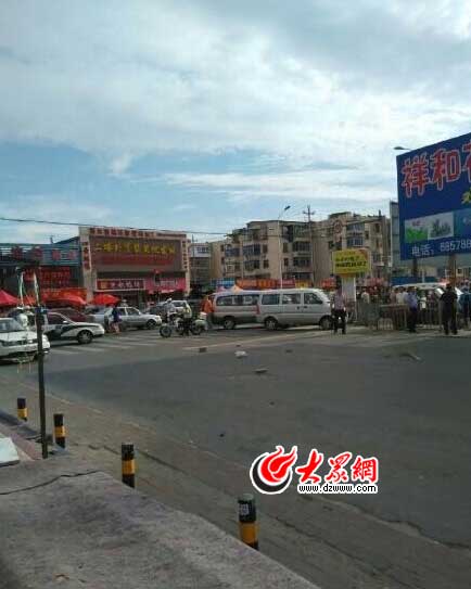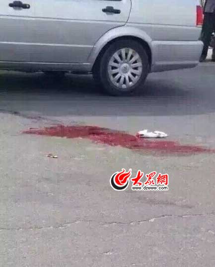 在距事發(fā)地10多米處有一個(gè)修鞋攤,修鞋的李大爺告訴大眾網(wǎng)記者,27下午2點(diǎn)40分左右,幸福中路一輛面包車(chē)?yán)锿蝗慌艹鰜?lái)一個(gè)身材壯實(shí)的小伙子,還有兩個(gè)人緊跟在后面追。三個(gè)人沿幸福中路由西向東跑,后面追的倆人兩次上前制服前面的小伙,但是都被小伙掙脫了,掙脫的小伙子拿出匕首嚷嚷著:別過(guò)來(lái),過(guò)來(lái)就弄死你!當(dāng)后面兩個(gè)人第三次上前時(shí),三個(gè)人糾纏在一起搏斗。突然,其中一個(gè)人就倒在了地上,渾身是血,那個(gè)年輕小伙撒腿就跑了。