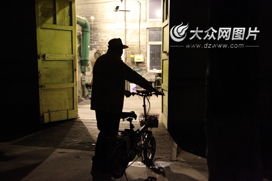 在濟(jì)南鐵路局兗州工務(wù)段,幾位師傅仍在從事著手工打鐵這門職業(yè),但是他們工作的時(shí)間都在晚上夜深人靜時(shí)。圖為工長(zhǎng)王玉海騎著電瓶車早早就來(lái)到烘爐房,做起開(kāi)工前的準(zhǔn)備工作,堆起煤渣、開(kāi)始生火。