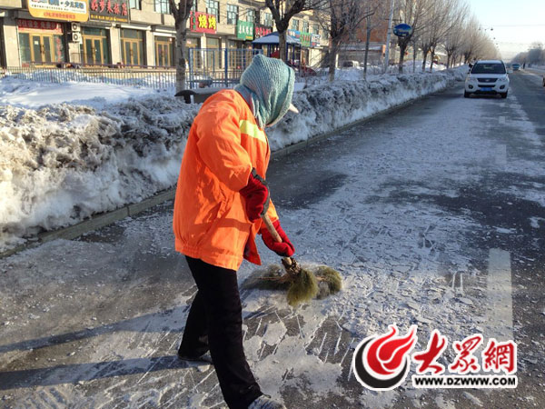 干活的時(shí)候,身上倒是熱乎乎的出汗,不過腳很冷,又過了20多分鐘,腳已經(jīng)凍得有些木了。我放下掃把,繞著她開始跑步轉(zhuǎn)圈,一邊轉(zhuǎn)一邊跟她聊天。她勸不動(dòng)我,被我逗笑了幾次,聊天內(nèi)容也多了起來。她告訴我,自己是菏澤單縣人,嫁到東北20年。自從干了環(huán)衛(wèi)工開始,已經(jīng)10年沒回過山東老家。