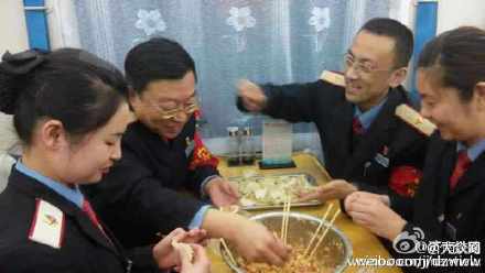 @大眾網:2月18日19:03,除夕的夜幕已經降臨,神州大地爆竹聲聲,華夏兒女喜迎春節。在這流動的列車上也不例外,老李和他的同事們除了要確保旅客平安回家,還共同為今天乘車的所有旅客準備了年夜大餐——水餃。看,純手工的大餡水餃哦~