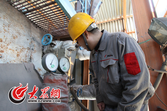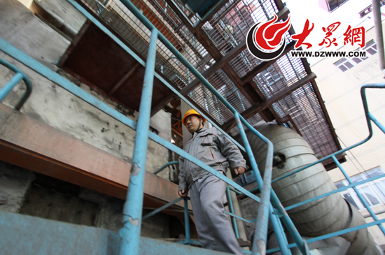這對“父子兵”中的父親林慶亮在濟(jì)南市南郊熱電廠已經(jīng)工作了29年了,2000年金雞嶺熱電廠投入使用后,他便從南郊熱電廠老廠調(diào)到這邊來工作。18日早晨8點20分,林慶亮開始爬這個30多米高的水塔,檢查水壓、水位等。