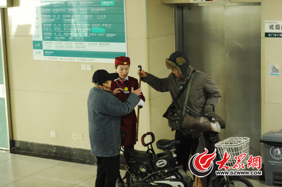 2015年2月18日,大年除夕,濟南市中心醫院電梯女工譚業芹依然堅守崗位。“攙扶老人是我們的分內之事,兢兢業業站好最后一班崗,除夕上班一點不感覺累,為大家服務很開心”譚大姐說。