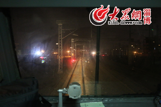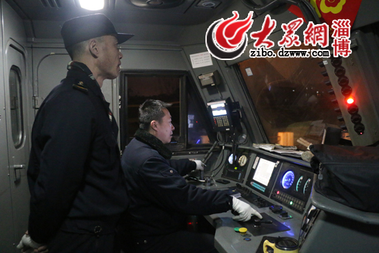 薛海濤駕駛的火車沒有電腦控制,只能是人工操作,掛檔、剎車、控制好時速。鳴笛、提手柄、呼喚應答……列車行駛在路上后,薛海濤一直忙個不停。記者眼中復雜的步驟,在薛海濤手里卻是十分嫻熟而連貫,從淄博開往泰安,184公里的路程,是他26年鐵路生涯中最為熟悉的路線。