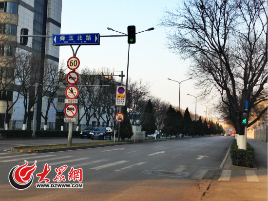 18日下午4:30,舜耕路的一個(gè)路口雖然亮著綠燈,也沒幾輛車通過(大眾網(wǎng)記者 韋輝 攝)