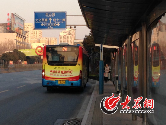 平日公交接龍進(jìn)站,乘客擁擠不堪的站臺此時(shí)只有三位乘客在等車(大眾網(wǎng)記者韋輝 攝)