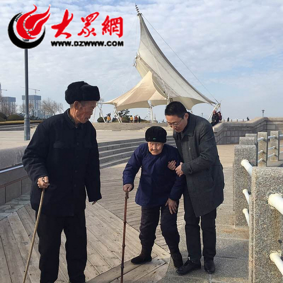 在燈塔廣場轉了20多分鐘,走到休息椅的時候,何召華拿出相機給兩位老人拍照紀念。擔心老人太累,隨后,何召華又開車帶著老人沿著日照市旅游專線——碧海路,一路開車到桃花島風景區,帶老人領略沿海風景。