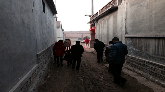 記者追隨王友明一行人去鎮上挨家挨戶拜年