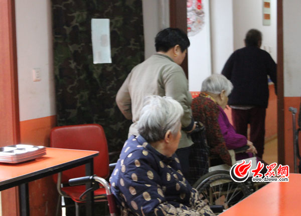 早上八點,擔(dān)任護(hù)理工的劉桂榮大姐開始了一天的忙碌,她和另一位同事負(fù)責(zé)護(hù)理一層的十幾位老人。兩人一直要忙到第二天早上八點,白天一小時巡視一次,晚上兩小時巡視一次,然后休息一天再接著干。從事護(hù)理行業(yè)四五年的劉大姐在很多老年公寓都工作過,“適合干這一行,誰家沒老人,誰不希望自己的老人晚年的生活過得更舒心一些。”干護(hù)理要不怕臟不怕累不怕麻煩,劉大姐每天的工作就是查看老人情況,為不能自理的老人喂飯,陪老人聊天,幫老人翻身,更換老人的床上用品……老人的輪椅輪胎沒氣了,細(xì)心的她找來氣管子打足氣。來自聊城的她今年快五十歲了,丈夫、兒子和女兒都在濟(jì)南工作、生活。今年春節(jié),丈夫回家陪家里的老人過年,她則留下來護(hù)理老年公寓里的老人。“趁著孫輩還沒出生,正好出來再掙兩年錢。將來幫著看孩子的話就沒時間出來了。干護(hù)理這個行業(yè),年輕人脾氣急干不了,年紀(jì)太大了又干不動。老人像孩子一樣,很多時候要哄,要有耐心。我這年齡還算比較合適。”她曾接受過專業(yè)培訓(xùn),對照顧老人比較在行,也喜歡這一行。“再高再重的老人,我也能從床上抱到輪椅上。”言語間,劉大姐頗有些女漢子的豪情。她也是個直脾氣,“我就是看不慣對老人不好。”曾去過一家老年公寓試工,這家公寓到了晚上就把老人鎖在屋里,第二天早上再打開門。她干了一天就離開了。“誰都有老的時候。對老人好,心里踏實。”劉大姐感慨地說。