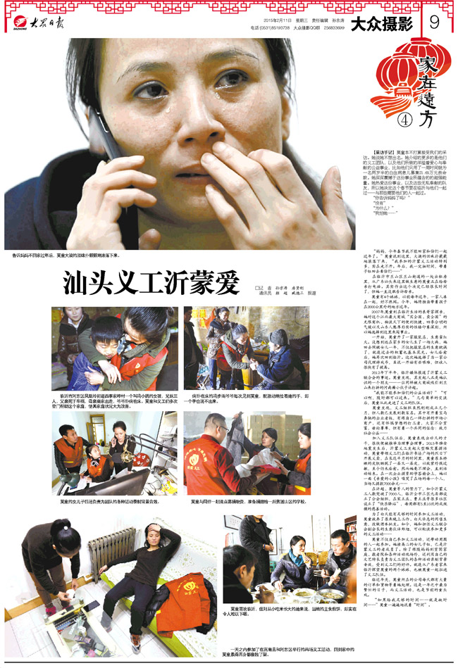 “媽媽,今年春節我不能回家和你們一起過年了。”莫童說到這里,大滴的淚珠撲簌簌地滾落下來,“我參加的沂蒙義工活動特別多,實在走不開。年后,我一定抽時間,帶著子鈺回去看你們……”