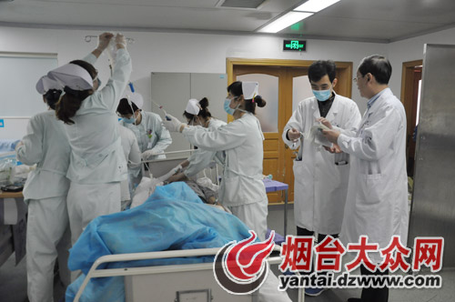 到達ICU病房時,ICU主任劉魯沂正在做例行檢查。劉主任告訴大眾網記者,今天他并不值班,可是早晨還是要來查查房才安心,沒有特殊情況的話再回家給親朋好友拜年。