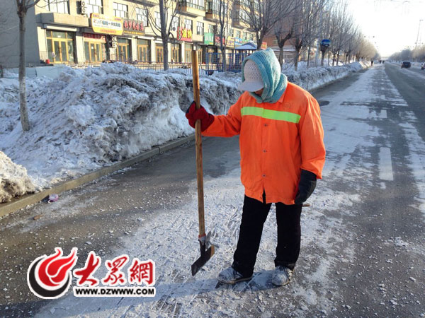 清雪過程中,不時有路人停下來勸,快開化了,不用干得那么認真。董會玲樂呵呵地跟人打招呼,“不行,開化了再結冰,溜滑的,萬一摔著了過不好年。”
