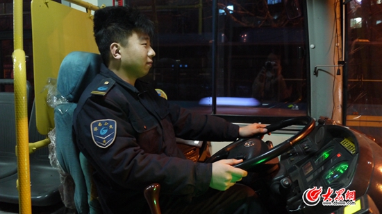 大眾網(wǎng)濟(jì)南2月17日訊(記者 蔡溦)春節(jié)是和家人團(tuán)聚的日子,然而有這么一群人,為了讓更多的人歡樂(lè)過(guò)年、便捷出行,他們放棄了和家人團(tuán)聚的機(jī)會(huì),堅(jiān)守在工作崗位上。“85后”公交司機(jī)楊艦就是其中的一員。像往年一樣,今年的除夕夜他又將在公交車(chē)上度過(guò),雖然滿懷對(duì)家人的愧疚之情,但他依舊堅(jiān)守著“舍小家為大家”的信念,服務(wù)千萬(wàn)家。