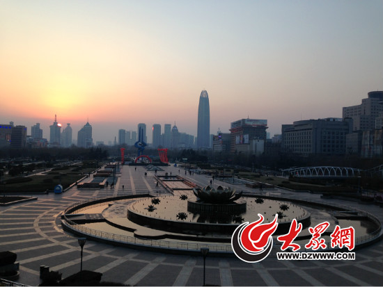 濟南的市中心此時也顯的冷冷清清,夕陽西下,泉標、噴泉、廣場構成了一副最美畫卷(大眾網記者韋輝 攝)