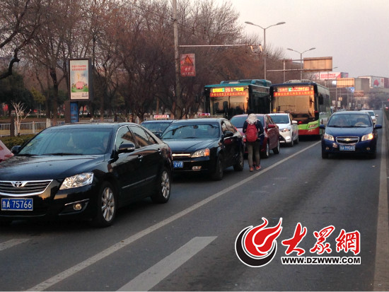18日下午4:30,舜耕路的一個路口雖然亮著綠燈,也沒幾輛車通過(大眾網記者 韋輝 攝)