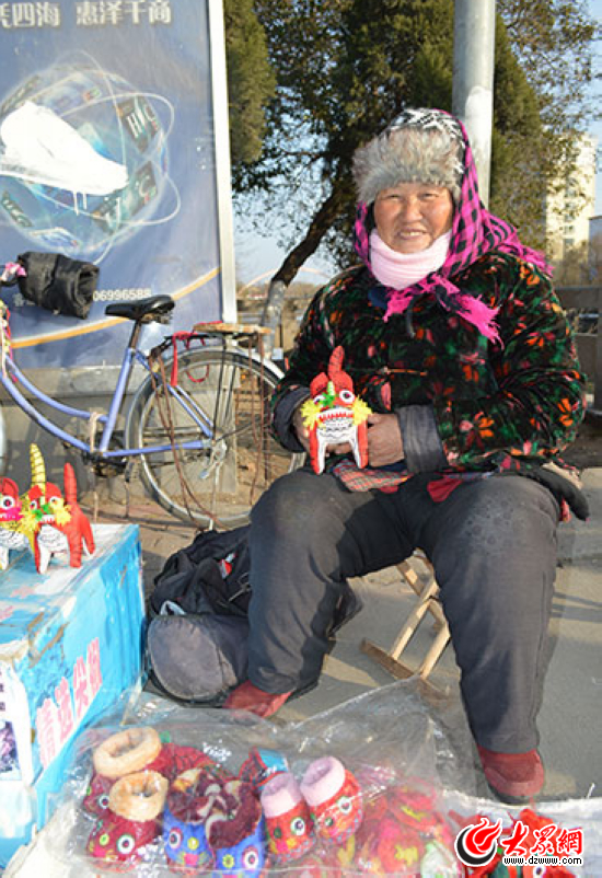 老人親手縫制的布老虎和虎頭鞋。現在會這種手藝活兒的人越來越少,我們也只能在過年這幾天看到她在中山北路“推銷”作品。
