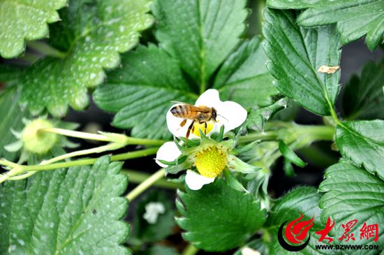 草莓地里花開正好,引來蜜蜂勞作忙。