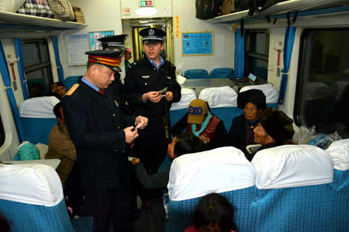 乘警們正在核對旅客的票務(wù)信息