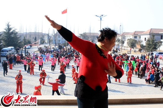 村里文化隊的帶頭人張阿姨正在起勁的跳著《小蘋果》