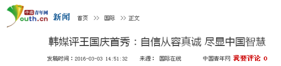 關于王國慶首秀的表現,媒體報道轉載最多的是“他(王國慶)給自己打60分,因為自己準備了好多話題還沒有時間講。被問到還有什么最重要的沒有講時,他表示:如果再講,就又是一場發布會了。”不過,相對于王國慶本人的謙虛,會場內外卻給予了其更多的好評。人民日報稱,新任新聞發言人王國慶面對記者提問侃侃而談、從容不迫,顯示出良好媒體素養和充足理論儲備,受到會場內外好評。最近幾年,從李肇星、趙啟正到傅瑩、呂新華,再到今天亮相的王國慶,這些新聞發言人都很重視公眾的需求。人們喜歡他們的個性,喜歡他們直言敢說、不回避敏感話題、不遮掩存在問題。而這些新聞發言人的不斷努力,本身也反映了兩會的開放透明。新華網則贊“本次發布會雖然并未出現預期的‘爆點’,但全程可以感受到作為一名‘老媒體人’,王國慶在迎接‘媒體大考’的那份從容與淡定。”中國記協網更是在文章《全國政協會議首場發布會熱點和亮點在哪》中特別選登了王國慶的問答“妙語”。據韓國《亞洲經濟》報網站3月3日報道稱,曾擔任2014年和2015年中國政協大會新聞發言人的呂新華,也是一位自信風趣的發言人,他妙語連珠,很多詞都成了當時中國的流行語。