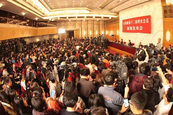 全國(guó)政協(xié)十二屆四次會(huì)議新聞發(fā)布會(huì)現(xiàn)場(chǎng)