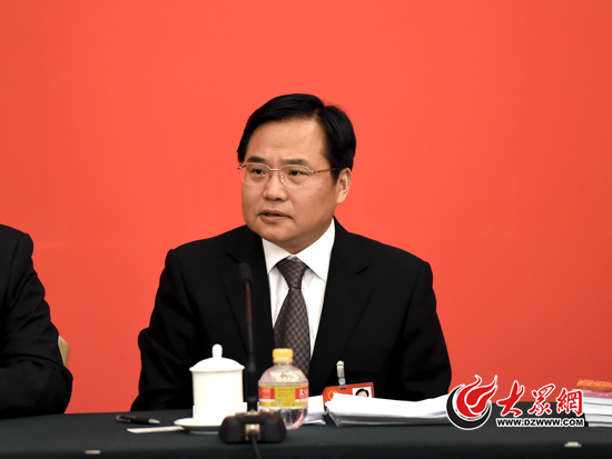 3月7日,十二屆全國人大四次會議山東代表團(tuán)對中外媒體開放,全國人大代表、青島市長張新起在回答記者提問。