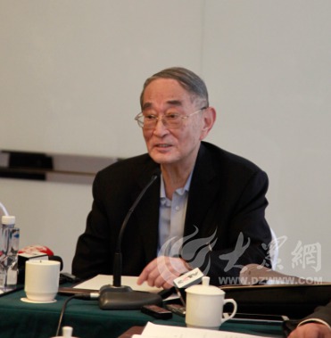 全國政協委員、著名經濟學家厲以寧在小組討論中發言。