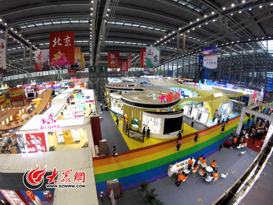第十二屆文博會共設置9個展館,主展館設文化產業綜合館和8個專業館,全國31個省、區、市及港澳臺地區全部參展。全國大部分省、區、市的主展區都設置在1號館,大眾網記者在現場看到,各個省、區、市的展廳造型各異,布置上也費盡心思,具有濃郁的地方特色和深層寓意。山東團的主展廳占地面積達525㎡,是山東參展歷屆深圳文博會以來的最大面積,也是文化產業綜合館中政府組團參展的最大面積。展區整體色調為藍色漸變黃色,契合“藍黃兩區”戰略,展廳采用奔涌而來的“海浪”造型,寓意山東文化走向世界。