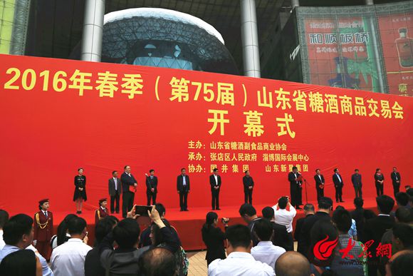 大眾網4月23日淄博訊(記者 張龍 )4月23日,2016年(第75屆)春季山東省糖酒商品交易會在淄博市開幕,本次會議由山東省糖酒副食品商業協會主辦,張店區人民政府、淄博國際會展中心承辦,國井集團、山東新星集團協辦,山東省糖酒副食品商業協會、省內外知名酒水企業、各大食品包裝參展企業等參與的大型展會。山東省糖酒副食品商業協會、魯酒領軍企業、全國知名白酒企業、大眾網、魯中網等媒體共同參會。